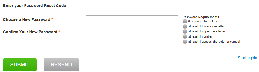 - If you need a new Password Reset Code, press the Resend button.